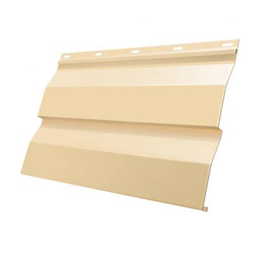 Металлосайдинг Корабельная доска Полиэстер RAL1014 выполнен в популярном профиле «корабельная доска», также известном как «корабельный брус». Он имитирует ровную горизонтальную деревянную обшивку и считается классическим решением в фасадном сайдинге.