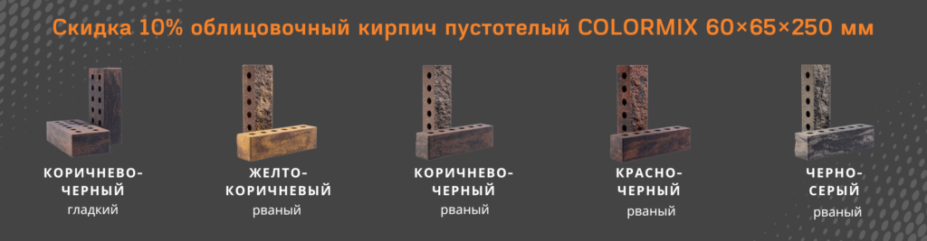Облицовочный кирпич COLORMIX — это высококачественный керамический материал для декоративной и защитной облицовки зданий. Он сочетает в себе эстетичный внешний вид, высокую прочность и отличные эксплуатационные свойства. Коллекция включает разнообразные цвета и текстуры, что позволяет создать эффектный архитектурный фасад и подчеркнуть стиль здания.